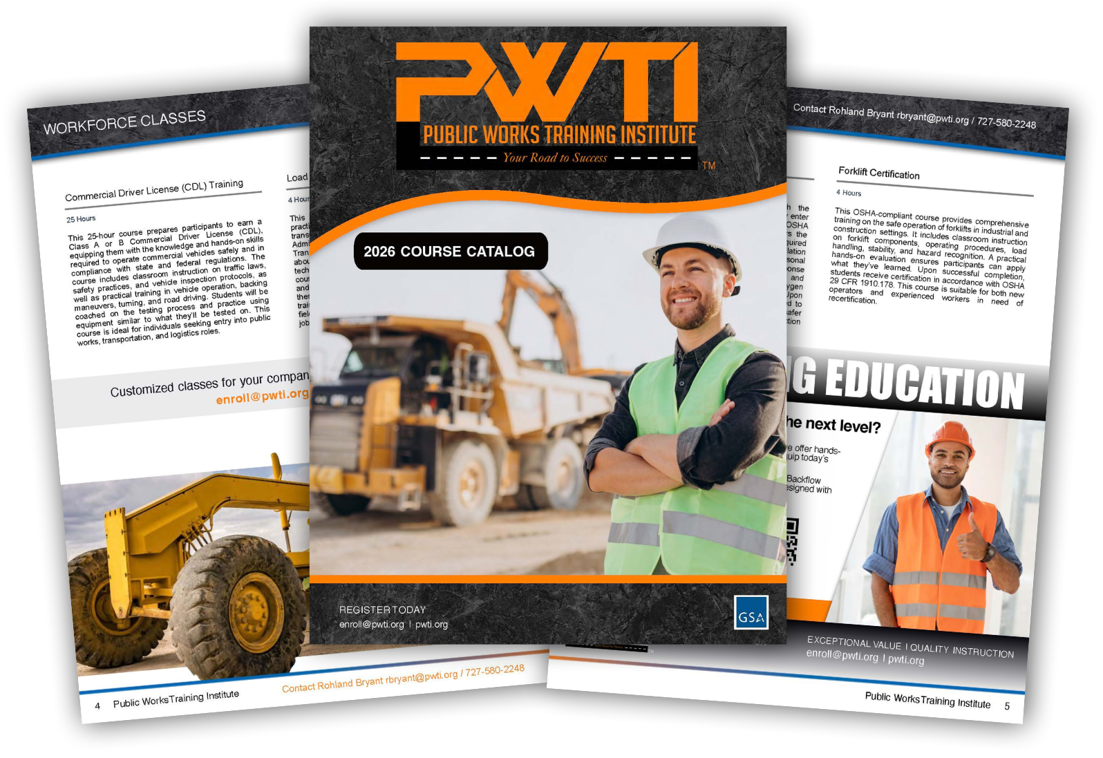 Sign up to our email list to receive our current course catalog and any latest news and updates from Public Works Training Institute.